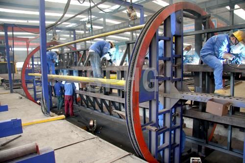 采用自動定位方式,所有工位均采用自動焊接。整條生產線采用滾輪輸送方式,在生產過程中,盡量避免行吊在工件上的使用,節省了行吊的使用時間,提高了工作效率。