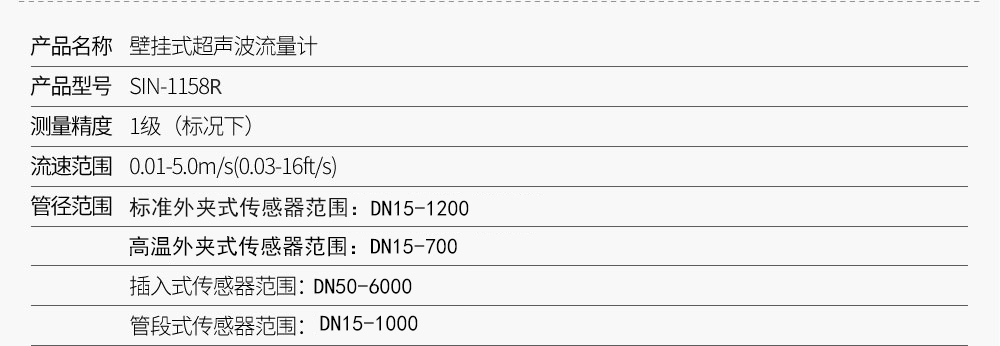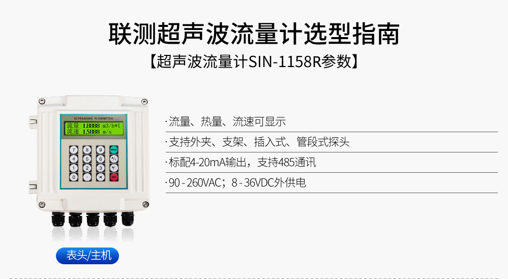 聯測SIN-1158R外夾式或者管段式超聲波流量儀表是以“速度差法”為原理,測量圓管內液體流量的儀表。它采用了先進的多脈沖技術、信號數字化處理技術及糾錯技術,使流量儀表更能適應工業現場的環境,計量更方便、經濟、準確。