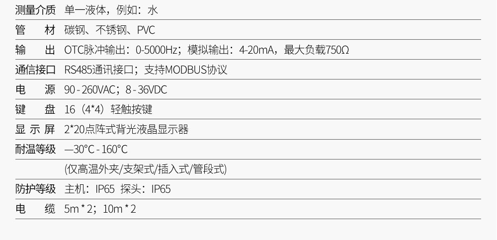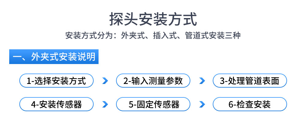 外夾壁掛式超聲波流量計(jì)利用了低電壓,多脈沖時(shí)差原理,采用高精度和超穩(wěn)定的雙平衡信號(hào)差分發(fā)射、差分接收數(shù)字檢測(cè)技術(shù)來測(cè)量順流和逆流方向的聲波傳輸時(shí)間,根據(jù)時(shí)差計(jì)算出流速。