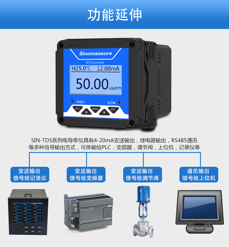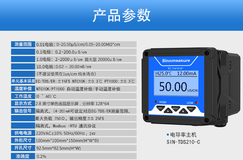 SIN-TDS210-C工業(yè)電導(dǎo)率儀表,廣泛應(yīng)用于火電、化工化肥、冶金、環(huán)保、制藥、生 化、食品和自來水等行業(yè)。控制器主要對溶液中的電導(dǎo)率/總?cè)芙夤腆w/ 電阻率和溫度進行連續(xù)監(jiān)測。