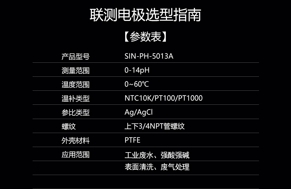 聯測SIN-pH5100電極使用耐壓半球形pH敏感膜,混合膠GMT構成的中介電介質,Ag/AgCL/KCL外參比體系,無鹽橋(OPEN)開口液接界所構成。廣泛用于純水和高純水以及復雜的化工流程。