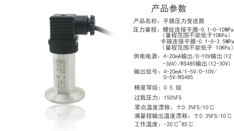 SIN-P350系列平面膜結構壓力變送器采用平面膜直接感受壓力。傳感器接口有卡箍式,M27×2,法蘭式可供選擇。輸出信號有電壓、電流、頻率信號等可選擇,傳感器平膜片防止了結垢,不衛生及粘稠液體堵塞等問題。廣泛應用于食品、醫藥、衛生及釀酒工業等部門。